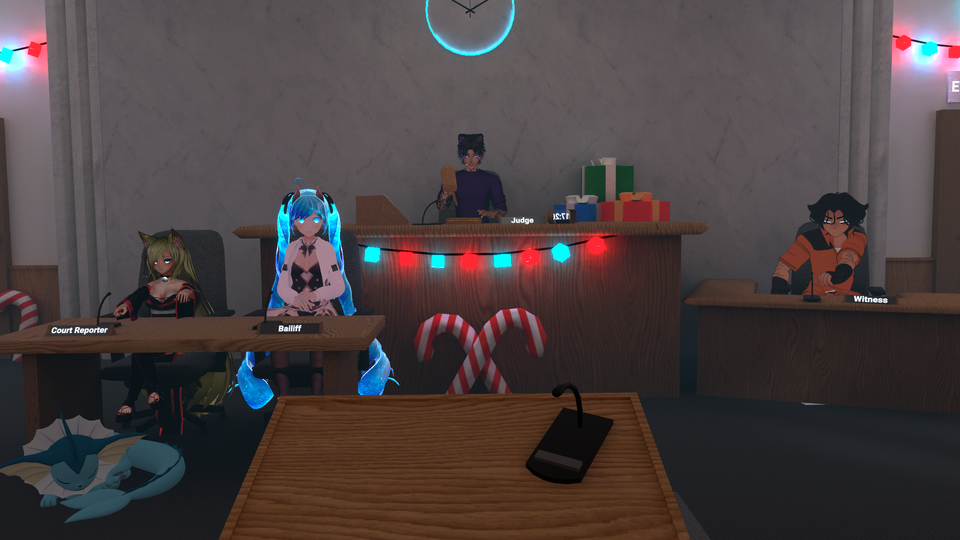 Alors n'hésitez pas à venir, que ce soit pour jouer l'accusé sur des scénarios prévus, les avocats, ou même les victimes, ou si vous désirez juste être dans le public pour cette émission du Tribunal de VRChat !